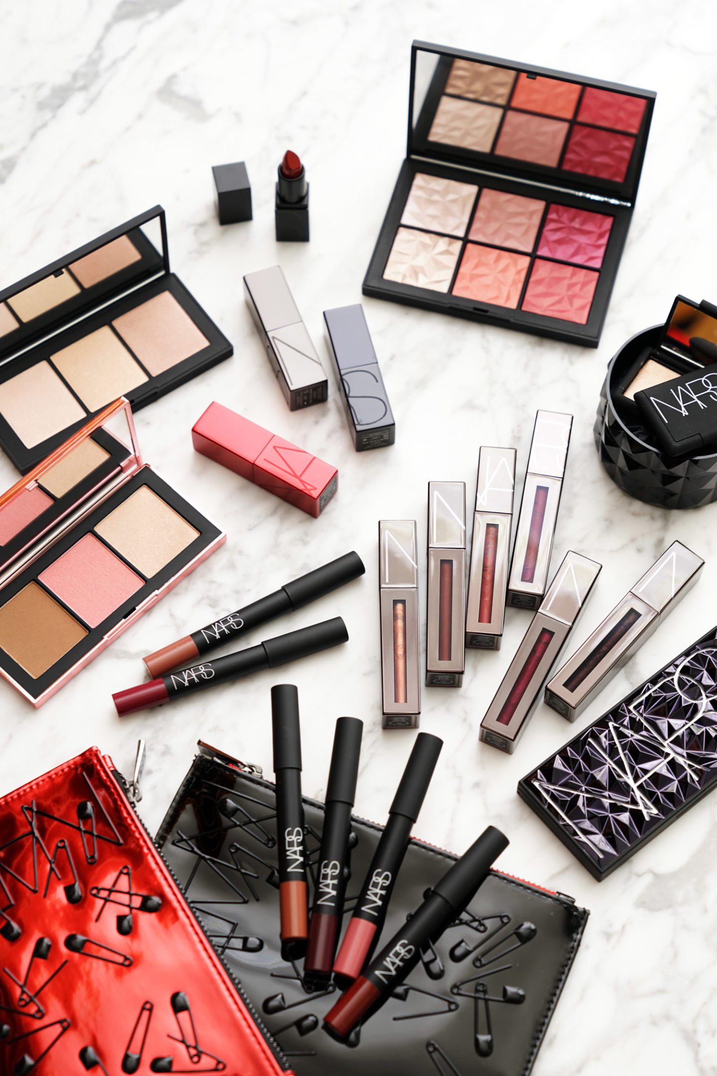 That wraps up my NARS holiday 2018 collection review! There’s a lot to look at and as usual I would say my recommendations for palettes should be based on the colors you think you’re drawn to or think you will wear. Quality-wise most everything performed well for me. I would say the misses are the Orgasm Infatuation Palette, Blackheart Powermatte Lip Luster and if you have very dry lips you will need to use a primer under the Matte Lip Pencils but I think some of the colors and really good. My top picks: Hot Tryst Cheek Palette, Provocateur Eyeshadow Palette, Audacious Lipsticks in Sheen and Siouxsie and the Powermatte Lip Luster in Combat.