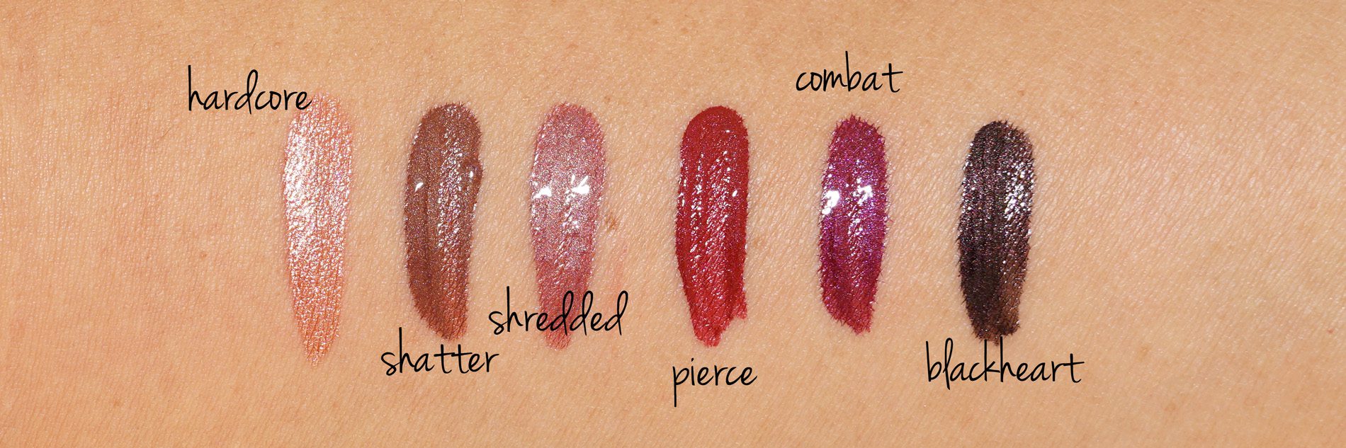 - Powermatte Lip Luster ($26 each) in Hardcore, Shredded, Shatter, Pierce, Combat and Blackheart