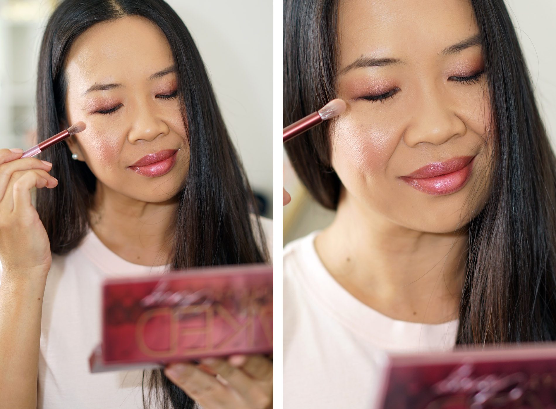 A lot of you have asked whether I prefer the Naked Cherry palette or the Charlotte Tilbury Stars in Your Eyes. It’s a tough call because while there are similar tones, I find them very different. The Charlotte Tilbury has more shimmer and glow with lighter warmer gold tones. It has more of a glam feel because of the shimmers. The Naked Cherry has a more monochrome feel with pink, plum and cherry colors. It also has more variety in the deeper colors for plum/pinks. Right now if I had to pick one it would be the Charlotte Tilbury one simply because I like the gold and champagne colors. I do think the Urban Decay one is more unique compared to what I already own.