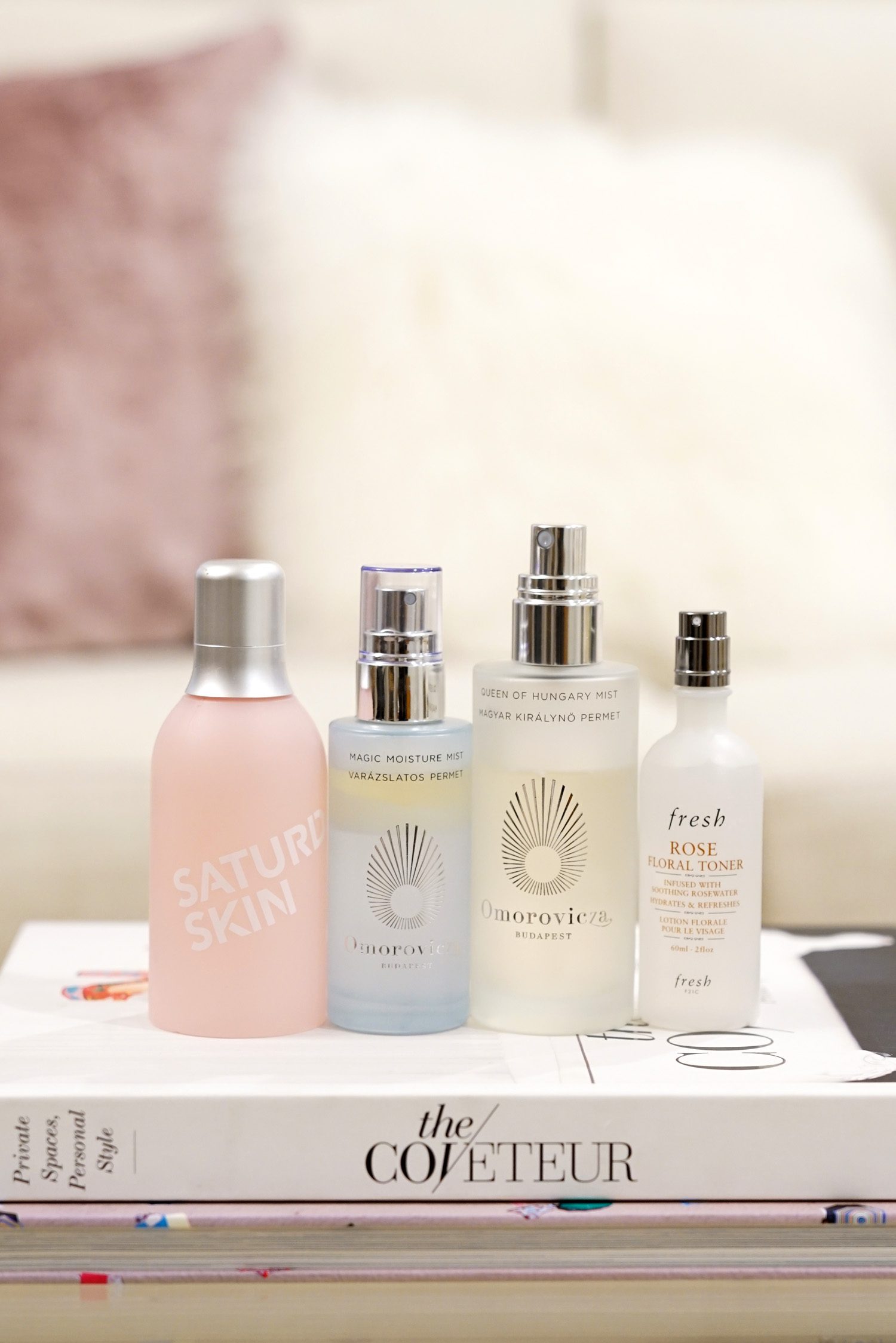 My one favorite is probably the Omorovicza Queen of Hungary Mist but this year they launched a bi-phase version called Magic Moisture that you shake up for more moisture. I think both are equally good. The Fresh option is more of a toner that comes with spray pump but I also use it as a face mist (it’s also alcohol-free).