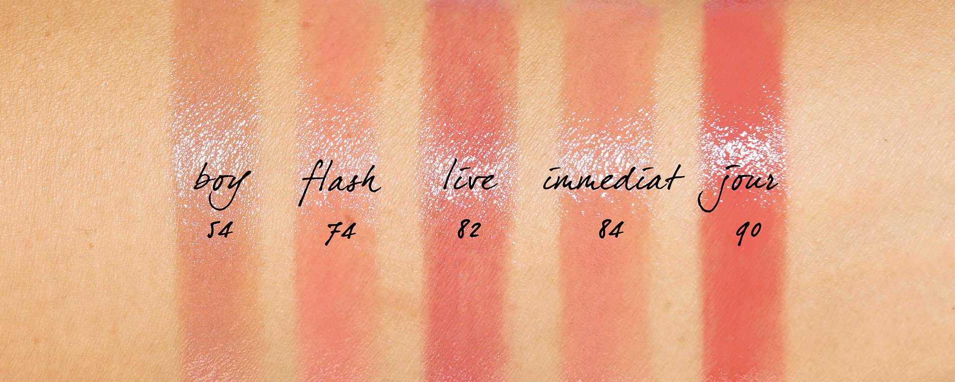 Chanel Rouge Coco Flash Swatches: Boy, Flash, Live, Immediat and Jour