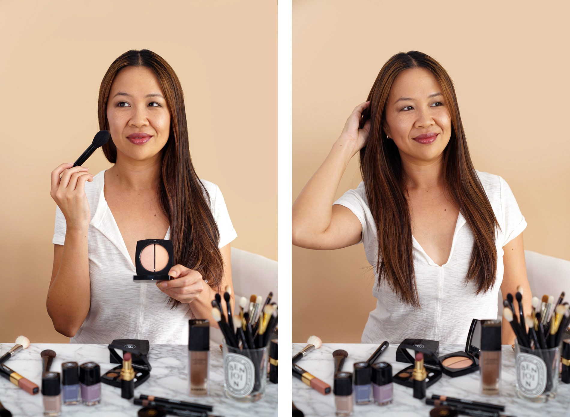 - Cheeks – both sides of the Chanel Duo Bronze Et Lumiere in Medium mixed together