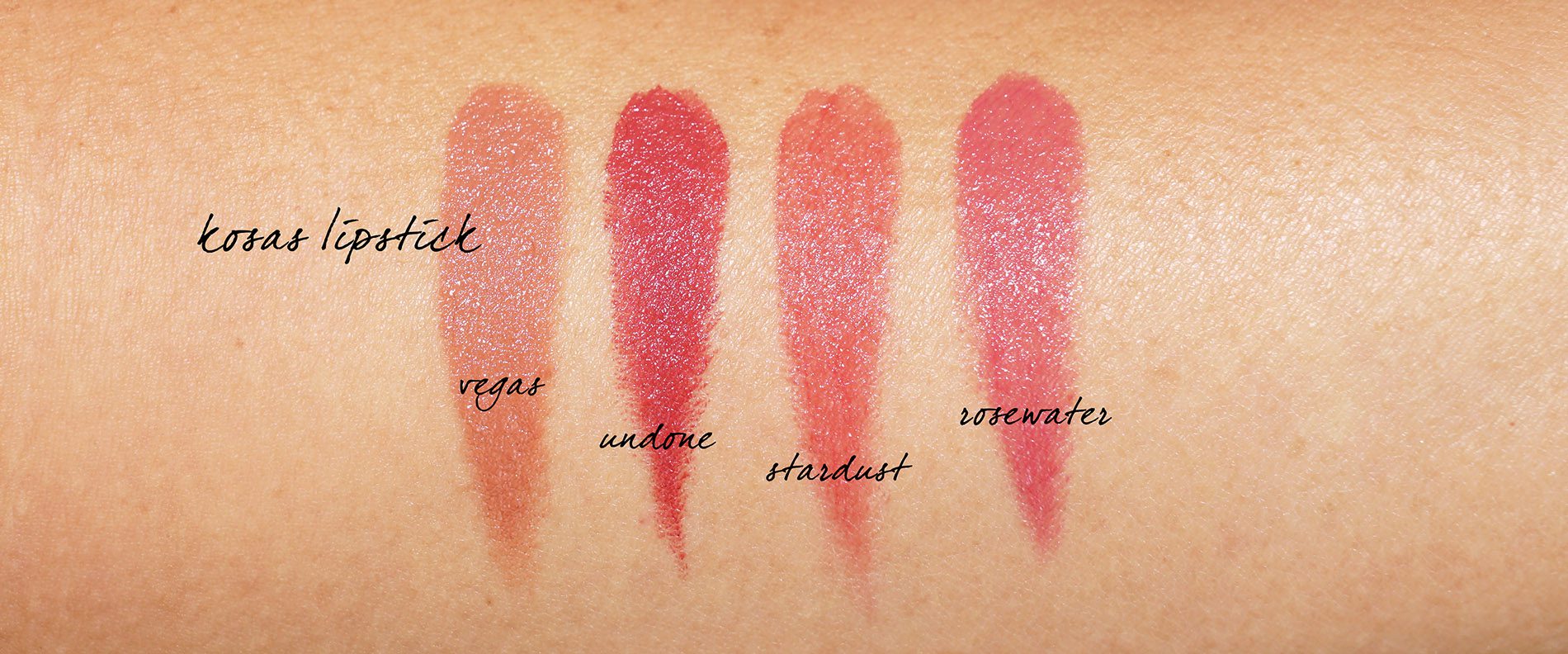 I think the Kosas Lipsticks are the best thing in their line. They’re creamy and super smooth. Colors are classics that you can wear everyday. Of course I gravitate towards the neutrals but there are some pretty amazing looking reds and plums. Vegas is exclusive to the Kosas website, but all the ones are available at other retailers like Sephora etc. They have different finishes, some are full coverage, others are more sheer but still have good color payoff. They have a slight vanilla scent like MAC lipsticks. Formula is more hydrating but still lightweight in feel and they did not dry out my lips or make them peel at all.