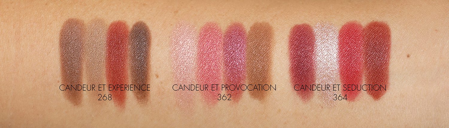 - Candeur Et Seduction has a raspberry matte, a pale white-pink shimmer, a bold red satin and a brown brick red