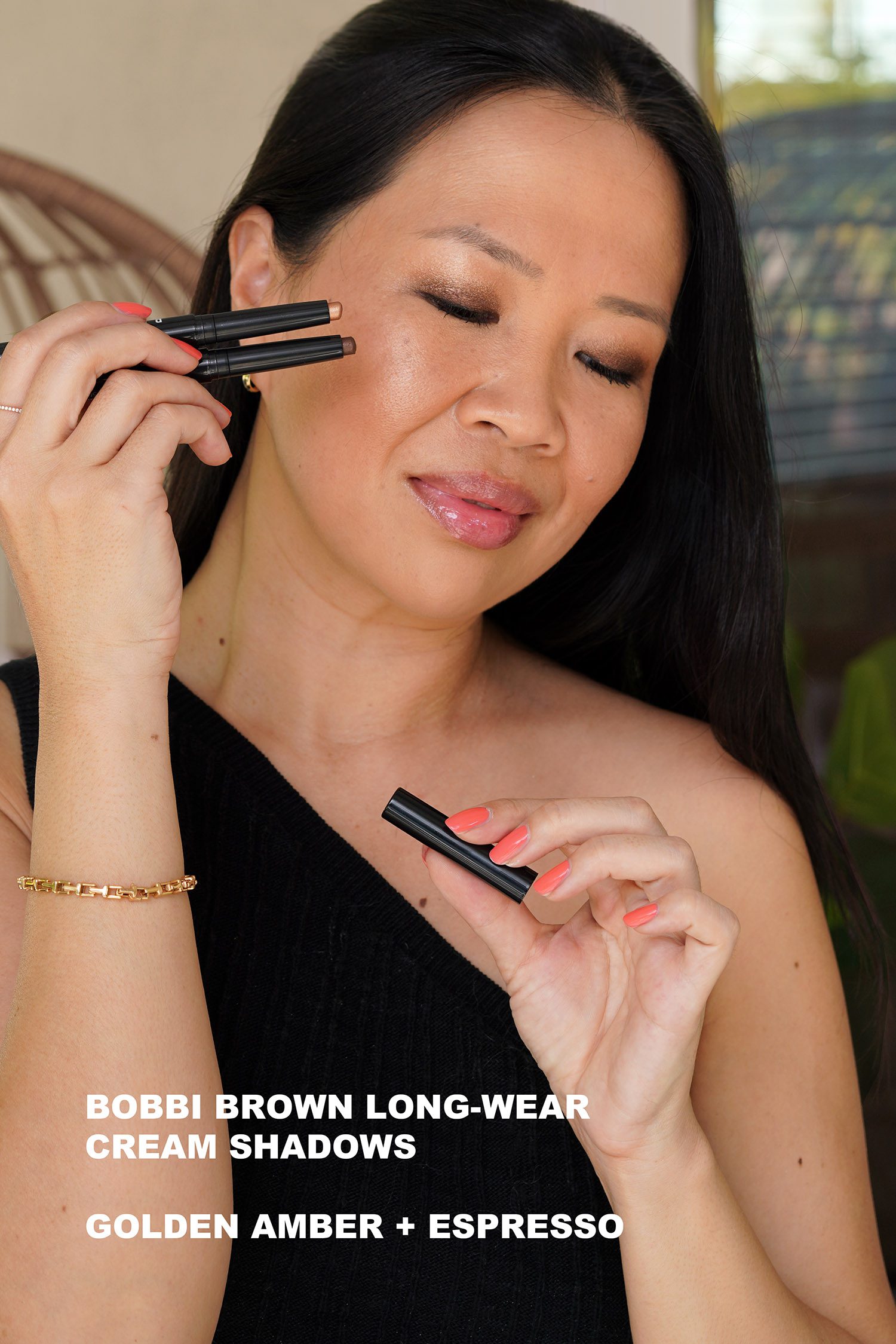For the eyes I love shimmer! Bobbi Brown launched new shades of her Long-Wear Cream Shadow Sticks and I love every single one. There’s a nice range of colors to suit everyone’s taste. I love the combo of Golden Amber + Espresso.