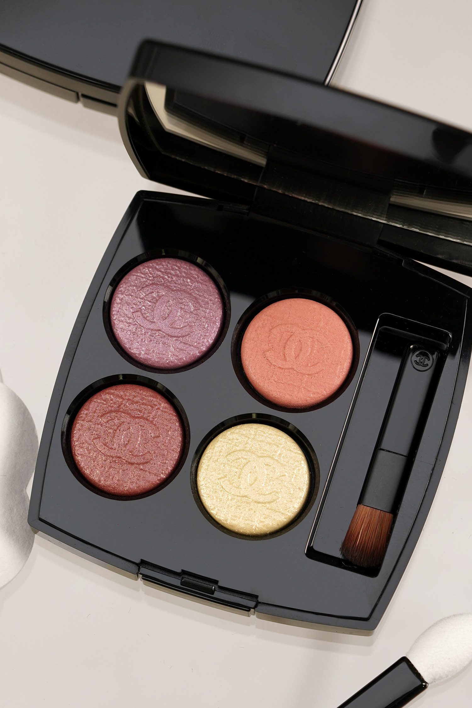 I think the Fantaisie de Chanel Illuminating Blush in Pastel Fuschia Is the stand out in the collection. On me it pulls more like a highlighter but I think it’s just beautiful. It’s mix of 2 shades using what they call tie-dye technology to swirl a rose pink and pale rose gold for a beautiful fabric-like pattern. The texture is smooth, easy to blend and layer, doesn’t emphasize pores and is just stunning. It’s so pretty I bought a backup.