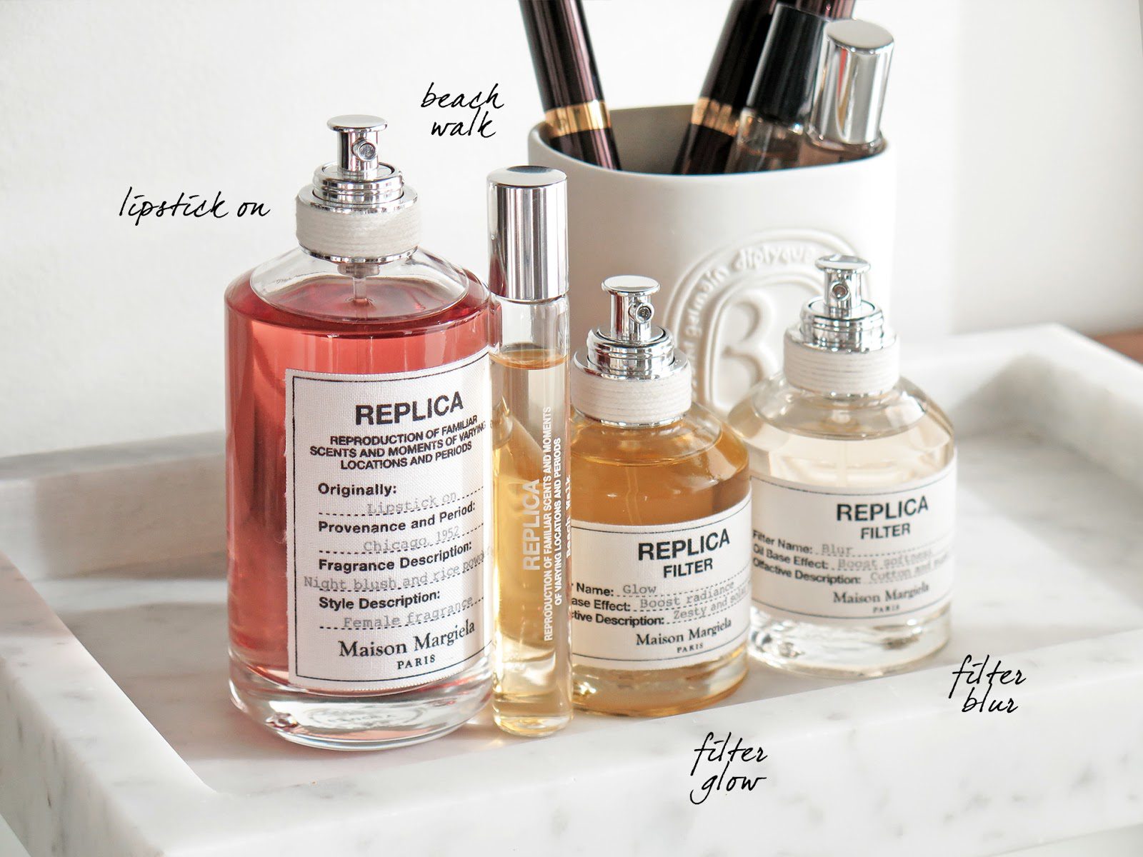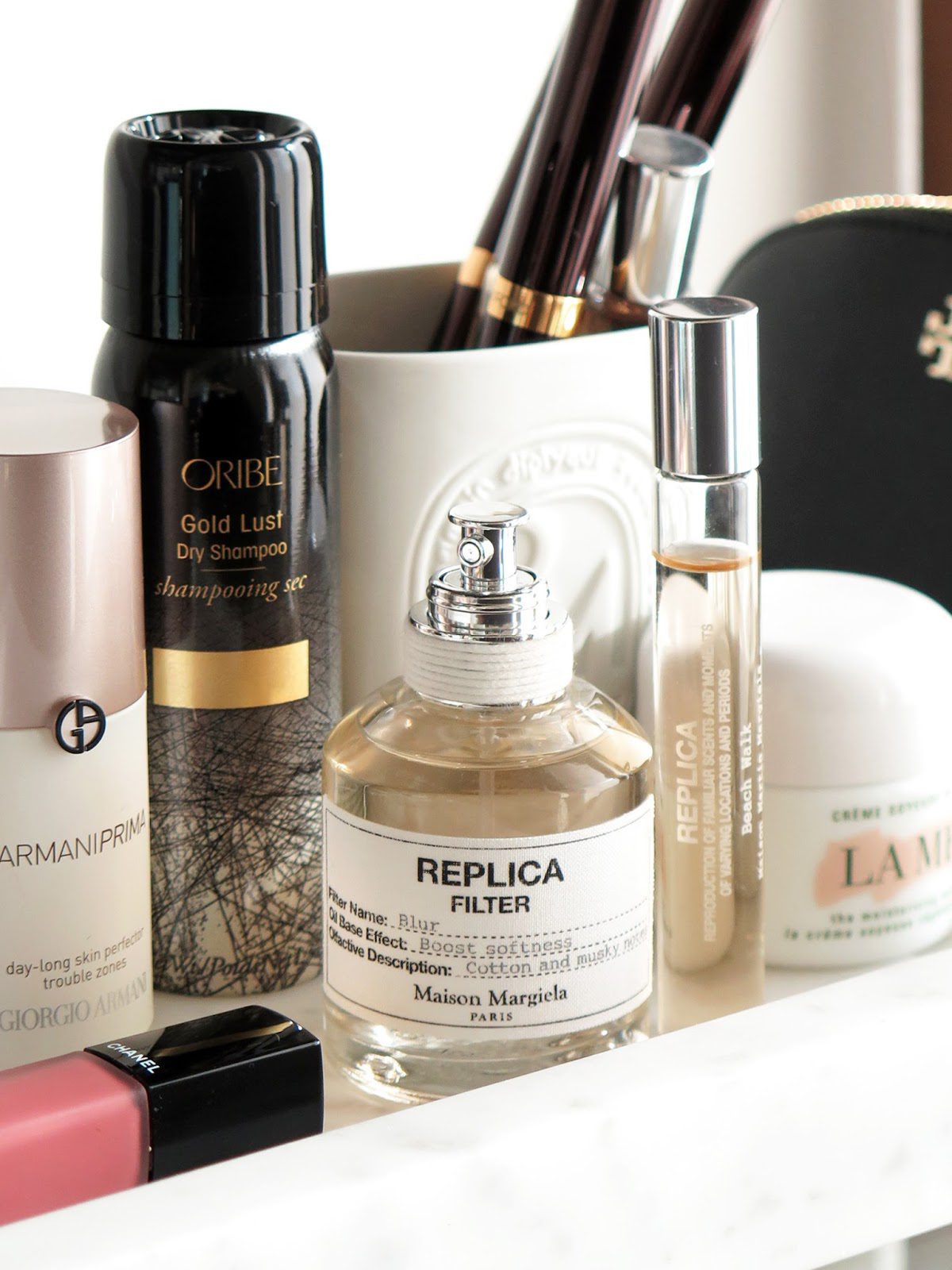 Replica Filter in Blur is a described as having Cotton, White Musk Accord, Gray Amber Accord.It does have a slight powder cotton like feel but it’s not too powdery and the musk rounds it out. It has a Byredo Blanche kind of feel with the lightness but sometimes Blanche can feel a bit sharp on me. Replica Filter Blur is softer with a more well rounded feel. Granted it’s an oil-based spray versus a full strength perfume so I don’t know that I should really compare the two. I like layering the Blur one with Replica Beach Walk the most.