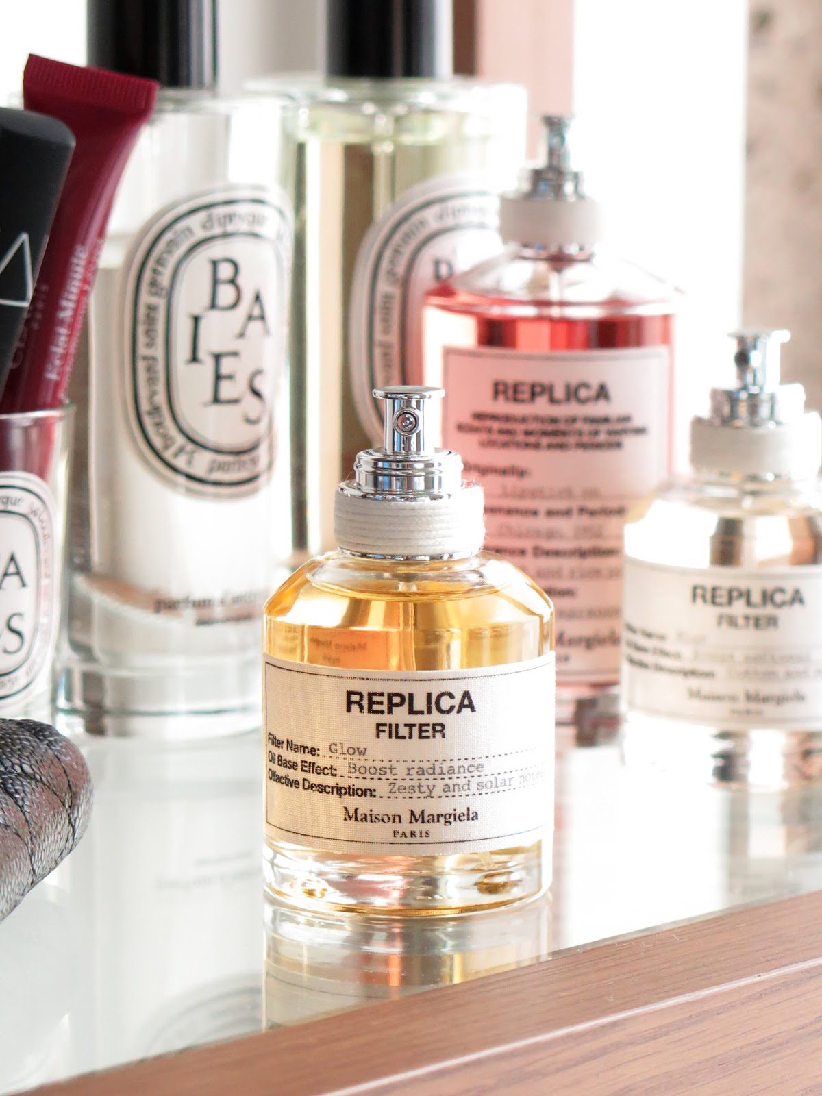 Replica Filter in Glow has citrus notes and neroli. This one is my favorite of the two (if I had to pick one). It sounds odd to describe this scent as sunshine but it feels like that to me. It’s a bright but mellow citrus that smells like skin to me. I love this one with anything – Replica Beach Walk, Lipstick On (c/o), Flower Market (c/o) and alone.