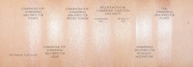 Below the Champagne Pop formulas swatched along with a few other Becca colors:
