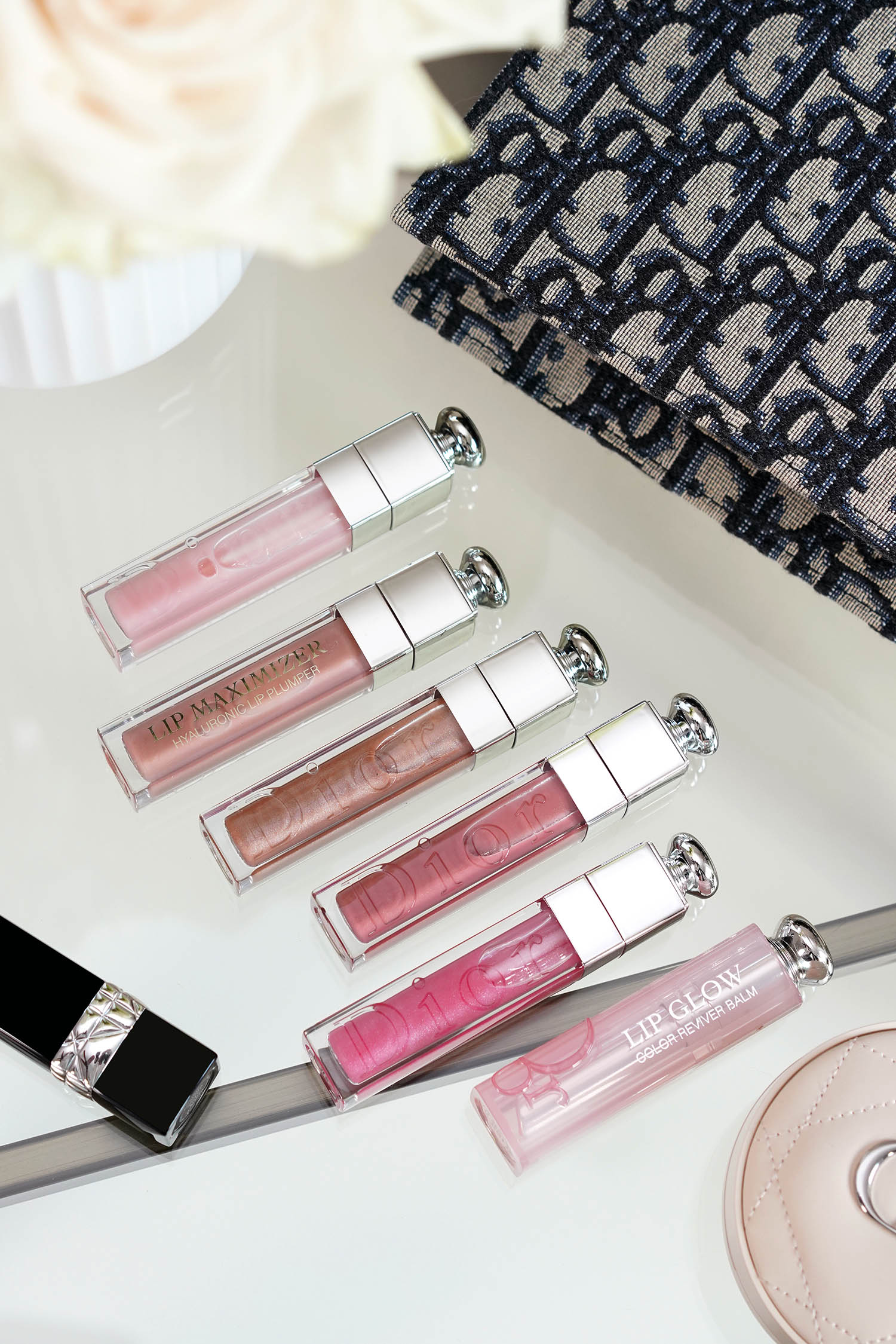 You can find the Dior Addict Lip Glow available at all Dior counters. The shimmer ones appear to be exclusive to Sephora for the moment. I bought all of these from Sephora. Makeup bags shown in most are by The Daily Edited (clear pouch) and Cuyana (mini bright pink bag).