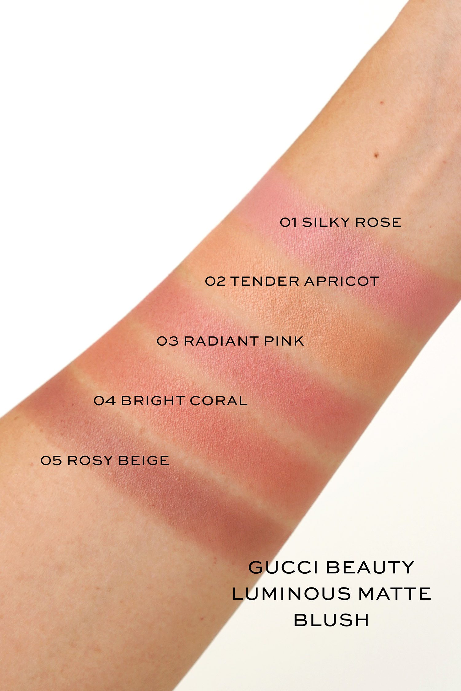 I love the Gucci Blush de Beaute formula and especially the new shades (peach is still available at Sephora, Saks and Bloomingdale’s). It’s a satiny luminous matte. The pigment is soft but easy to build. Soft Peach is a very soft brownish nude peach on my skin, it is very natural looking because of my skin tone but I love the look and finish. Intense Ruby surprised me because it looks a little intimidating in the pan. It’s a raspberry pink but is very easy to blend. Right now the ruby shade seems to be sold out but I do think it’s close to the True Plum shade. If you can find it definitely snag it as fast as you can!