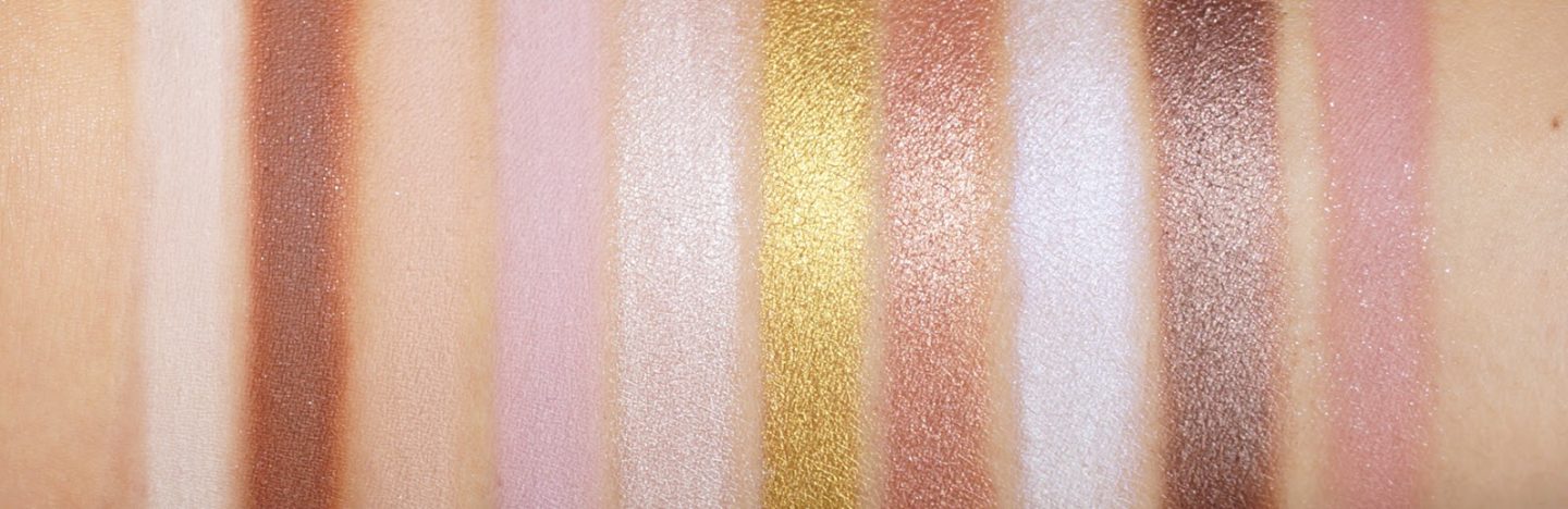 A closer look at the palette and swatches. Each of the shades have names but they aren’t labeled on the palette so I’ve split it into the top half and bottom half. The shimmers are absolutely stunning and buttery soft. There are a few mattes with sparkle flecks – they perform really well with no fall out. The mattes are among the best mattes I’ve tried. Often times super pigmented mattes can either be chalky unless you apply with a detail brush. These mattes apply well with a loose fluffy brush or dense brush equally well and it’s a huge plus that I experienced no fall out.