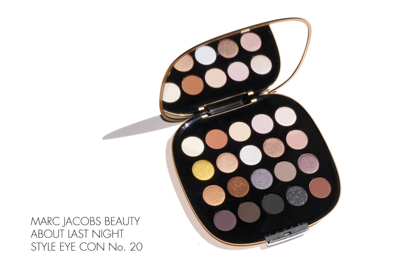 Marc Jacobs Beauty launched their About Last Night Style Eye Con No 20 Eyeshadow Palette ($99 for 20 x 0.03 oz/ 0.85 g) earlier this past fall. I ordered mine back in August and this review has been on my to-do list for ages. If you haven’t had a chance to try it out I recommend you do and that you put it on your wishlist or Sephora shopping list because it is amazing. It’s a huge palette that contains 20 eyeshadows, all with amazing textures, smooth finish, rich easy to layer pigment, no fall out even when you apply on the eyes, long lasting power and basically endless combinations. I was really blown away by the quality and colors. There is only 1 shade I’m not crazy about which is the yellow gold shimmer, but the rest of the colors are top notch and ones I can actually wear.
