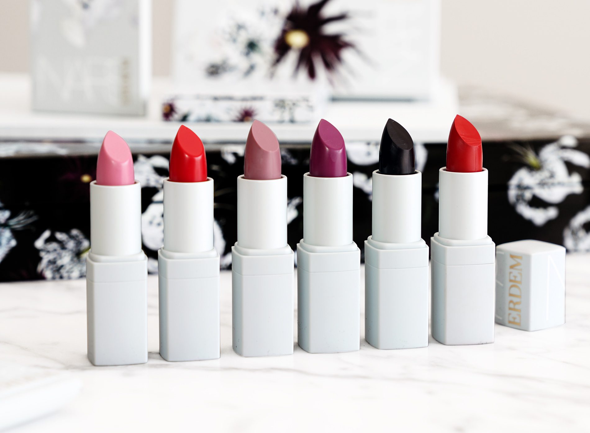 Most of the colors have a beautiful smooth application. There are some however that apply streaky on bare lips and settle into fine lines. Color descriptions and thoughts on which ones are the best below. First a look at the shades and swatches.