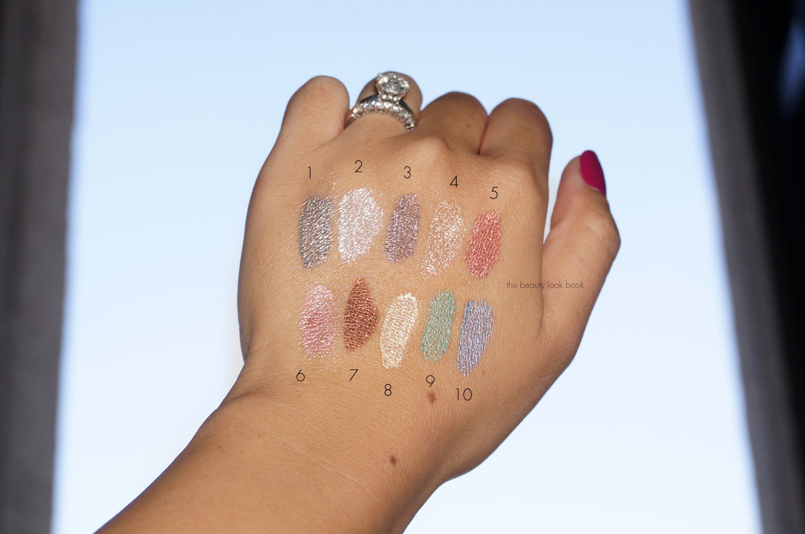 Here are all the colors swatched with different lighting so you can see how they look when light or a flash hits the shadow. Note these are swatched straight from the tube without any blending. Don’t be worried by the shimmer, the colors blend out beautifully and sheer out a little but they do not loose their pigment.