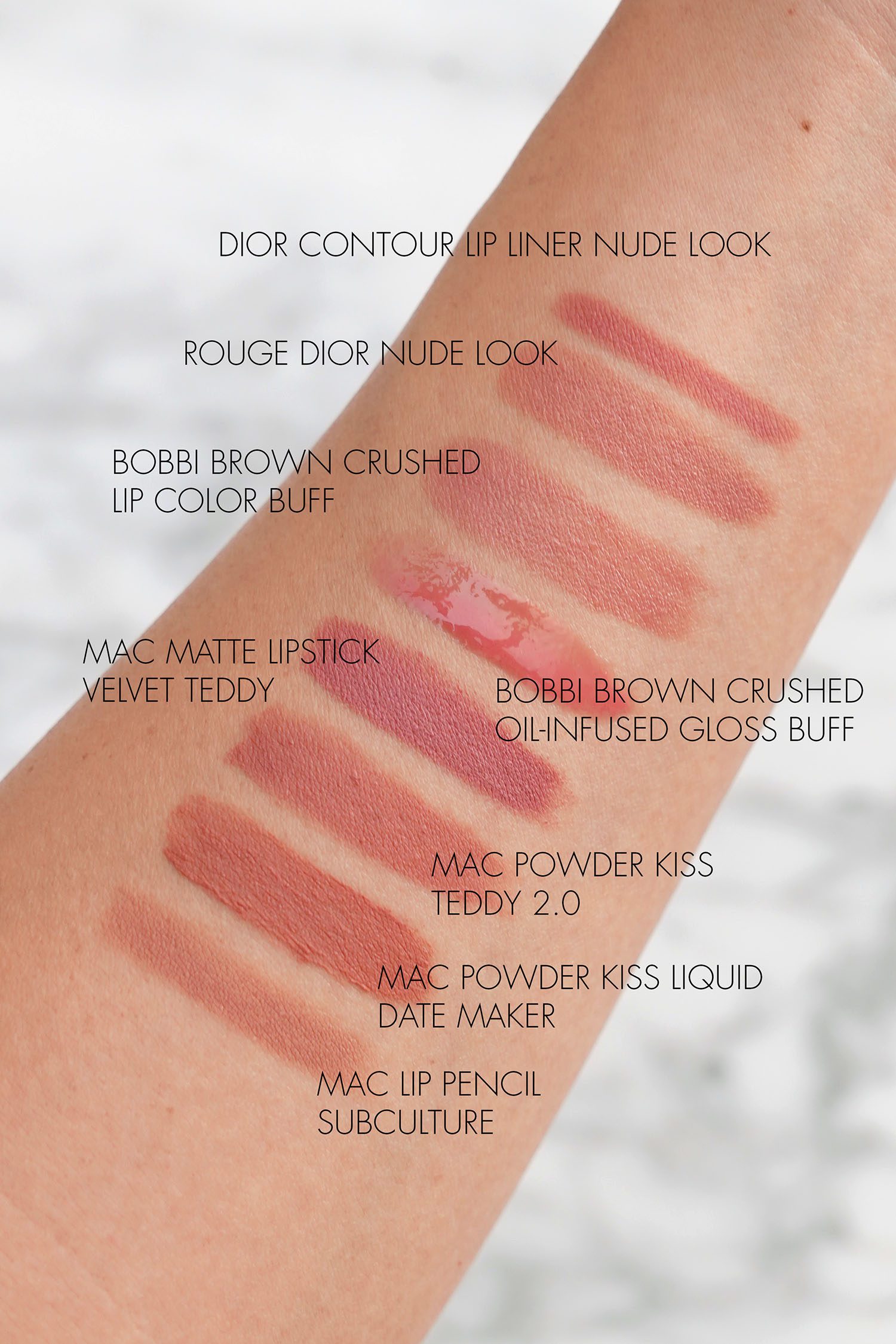 Bobbi Brown added some new shades to the Crushed Lipstick formula and I picked up Buff which is a lighter neutral pink beige. It has smooth medium-to-full coverage and it comes in a wide range of shades and undertones. I really like this one! I swatched these next to a few others from MAC for reference including the classic Matte Lipstick in Velvet Teddy, new Powder Kiss Lipstick in Teddy 2.0, Powder Kiss Liquid Lip in Date Maker, and Lip Pencil in Subculture.