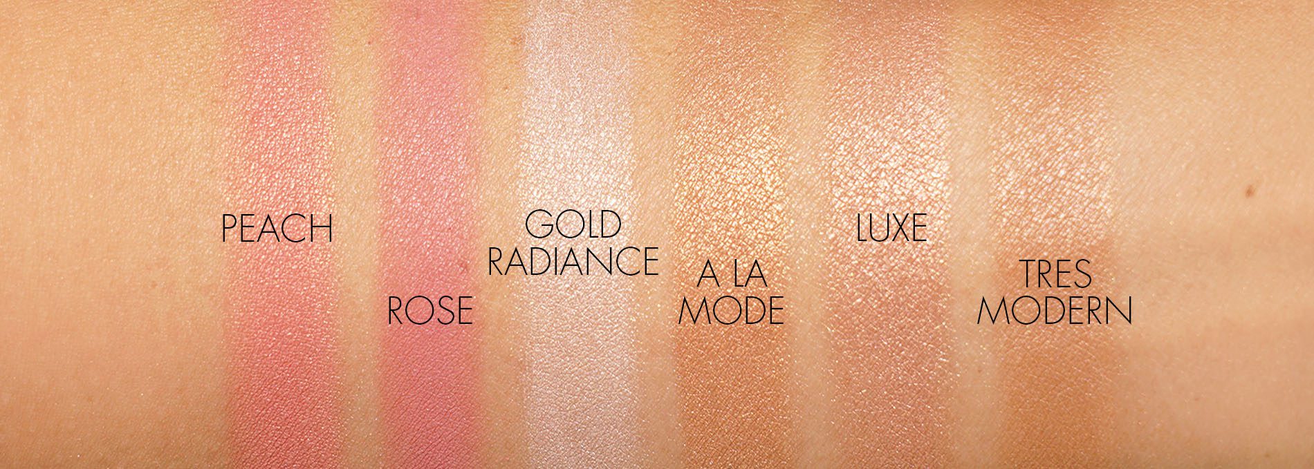 Laura Mercier Tres Chic Face Palette ($52 on sale) has six shades for blush, highlight and bronzer. The colors have a soft wash to them in what appear to be universally flattering tones. It looked so stunning in store it took my breath away! I need to play with this more. My first impressions are that it’s very soft and extremely powdery. It felt ultra sheer, almost a little too sheer. It promises 10 hour wear and it did last all day without budging or darkening. I’m undecided but my first impressions are that I might just be too dark/tan for this one. I swatched with a super heavy hand below and it’s still very soft looking.
