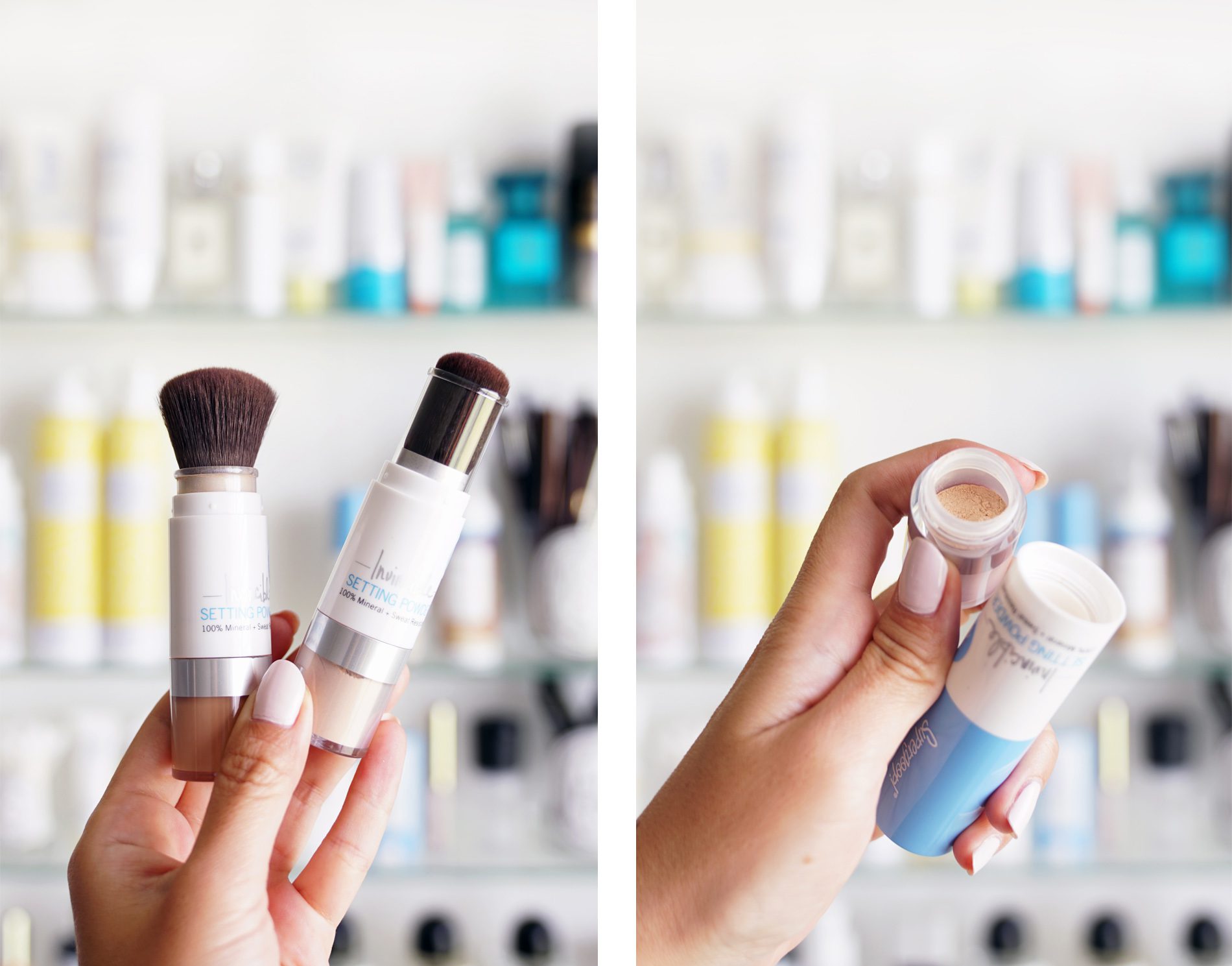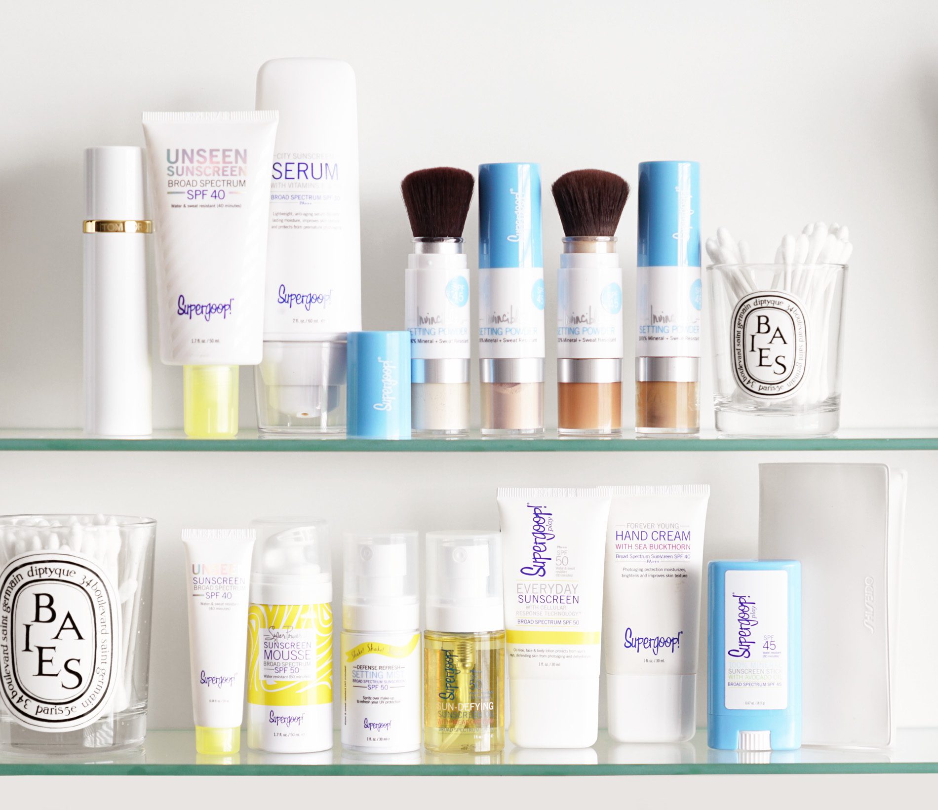 - Supergoop! Defense Refresh Setting Mist with SPF 50 is one of the best ways to reapply face sunscreen without ruining your makeup. I also love their powder but find the mist is something I reach for more often.