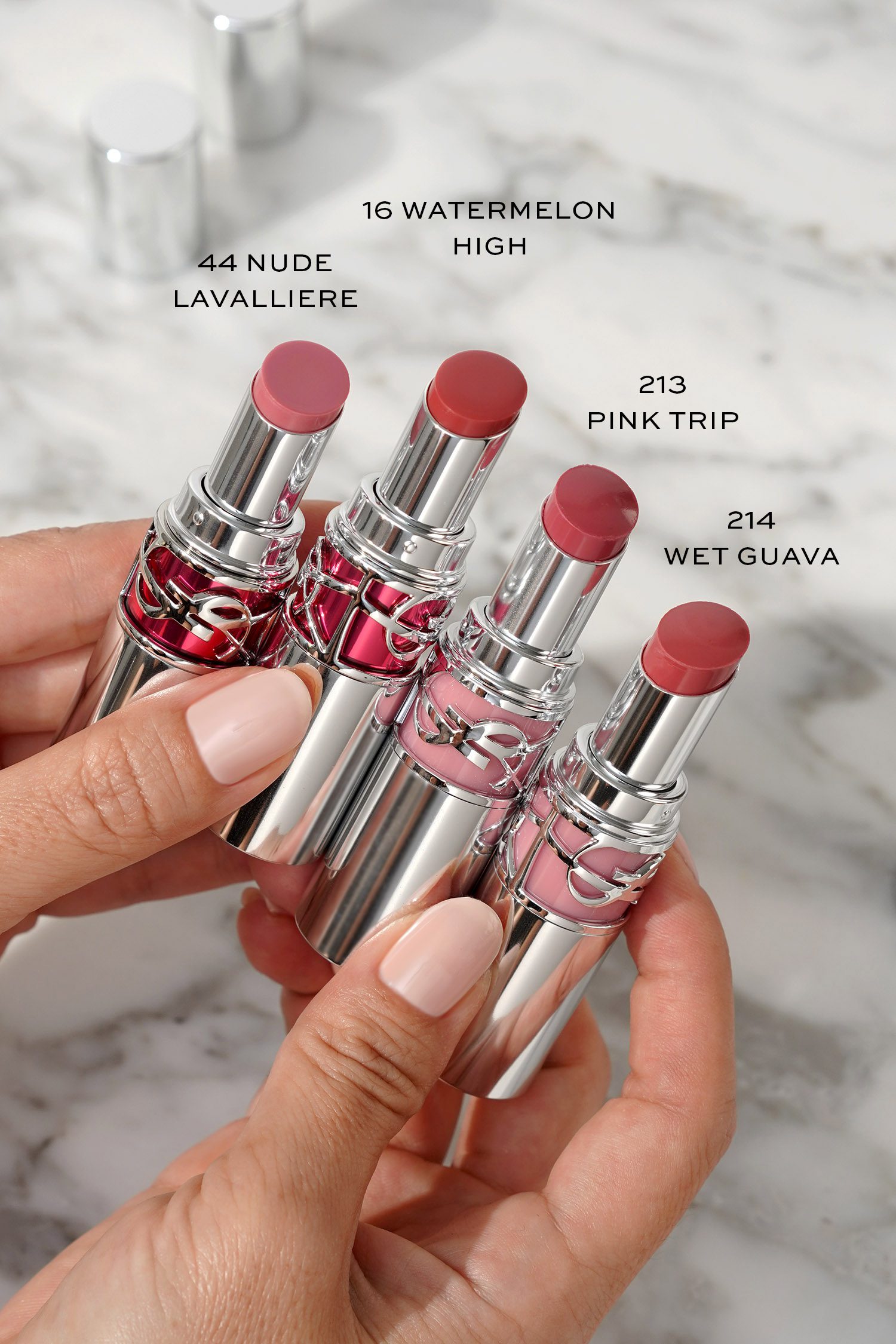 I’m always excited for new shades of the YSL tinted balms. There are two new shades of the Candy Glaze which is my favorite formula from YSL. It’s on the thicker side but in a good way so the colors adhere well to the lips and they stay put longer than other tinted balms. They added 44 Nude Lavalliere to the lineup which is a pretty cool toned pink and 16 Watermelon High which is a warm rose. I love the colors and finish.