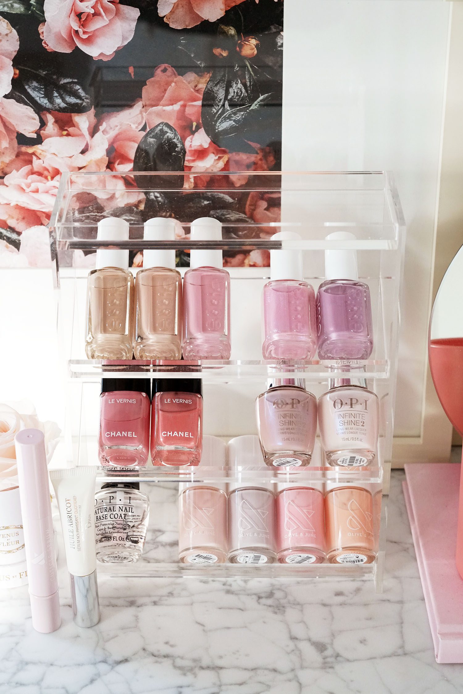 Color-wise, my favorite colors right now are the Chanel Fleur do Pecher and Petale from the La Fleur Et L’Eau Collection. However many of you asked me for more budget-friendly recommendations so I’m sharing some colors I’ve hauled recently from Essie, OPI, Olive and June below.