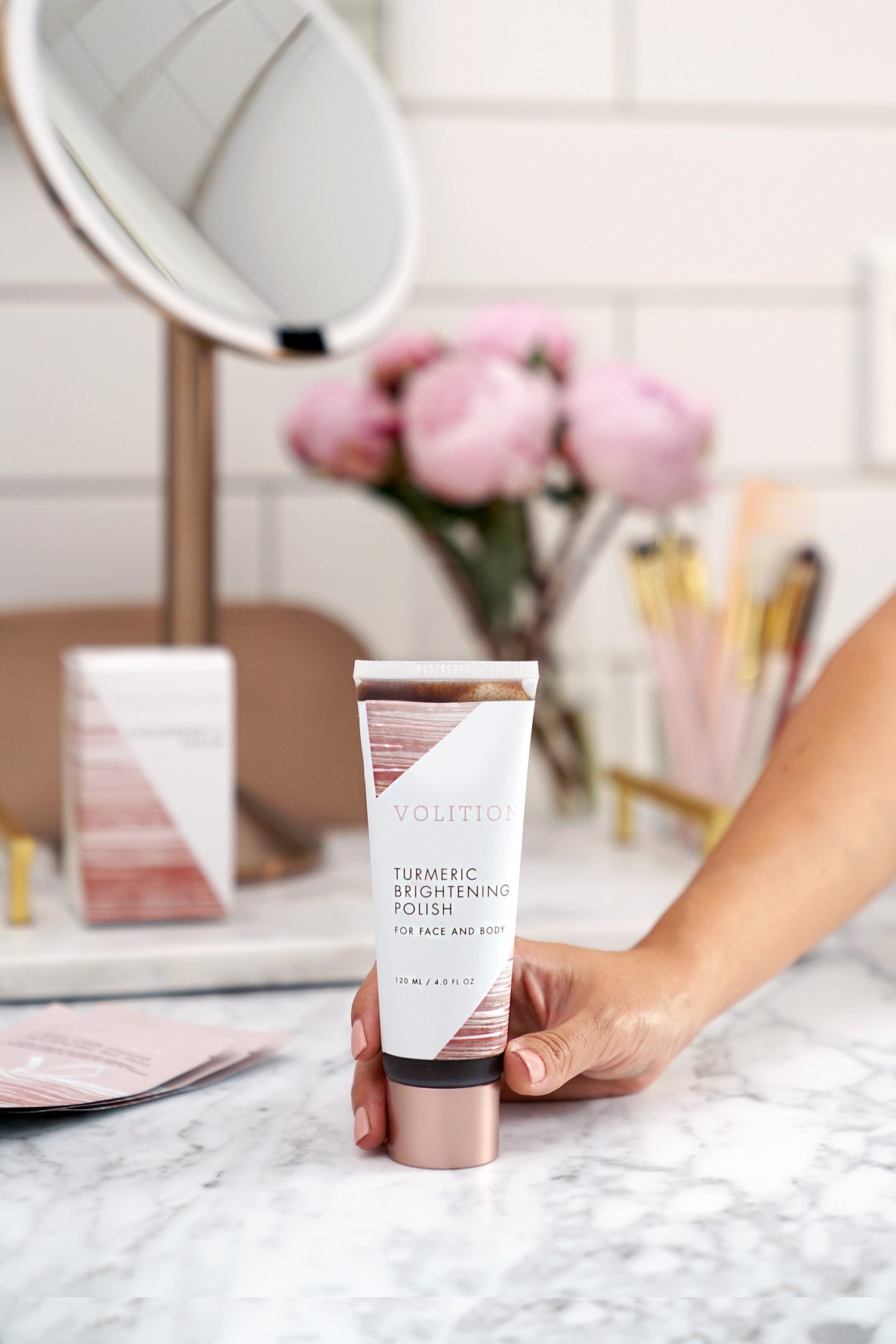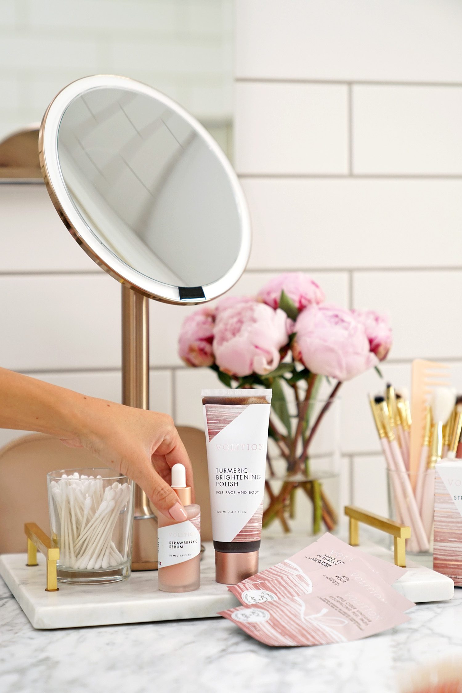 I’m so excited to share some new skincare that I’ve been using from Volition Beauty. Their products are clean and cruelty-free! I also think it’s so interesting that they create products based on ideas submitted by consumers. Skincare is made based on what real people need and want. You can read more about their Clean Beauty Philosophy on their website (I found it really interesting!). These days I’m all about getting that radiant glow so I was thrilled to give their three best sellers a test because they’re designed for brightening, exfoliating and hydrating. I’ve partnered with them to give you a closer look at The Best of Volition Kit ($64). It’s is an online exclusive with their cult favorites (currently 30% off). It includes: