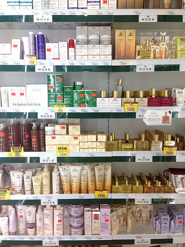 I was thrilled to visit several French Pharmacies around Paris. Quite a few of my friends here in the US who have been to France and studied French in college said the pharmacies are like CVS and Rite Aid in the US – they are on almost every corner and stock items locals aren’t really excited about. I didn’t know what to expect but was really impressed by the selection. Stores were stocked with Bioderma, La Roche-Posay, Phyto, Caudalie, Nuxe and more. Some had an entire wall of Nuxe or Phyto. I only made a few small purchases since most of what I was interested in were liquids – I wouldn’t have been able to fit them in my quart-sized carry on. I went inside about a dozen – most stock similar items. Some have more variety compared to others. I was really impressed with the reps in each store. The vast majority seemed to wear white lab coats, they were very knowledgeable in all the lines and options. They were really helpful too. I was able to snap few quick photos inside a couple with my iPhone. I was really impressed by the selection of sunscreens available – had I planned our itinerary better, I would have shifted our Paris week to the end of the trip and filled a suitcase with liquids (skincare, body care, jams, jellies, tea and all the things you can’t carry on). Bioderma minis were plentiful and cheap – usually around 2-3 € or sometimes in packs.