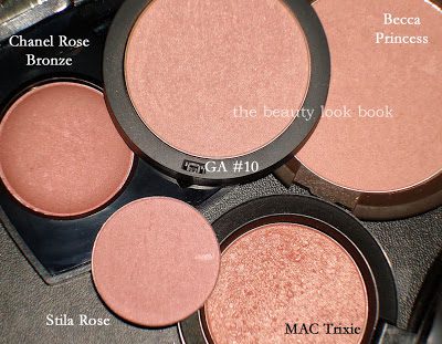 There’s something so pretty and girly about a light pink shimmer powder. Unfortunately, many times, the light pink ones go on white on my skin even though they look pink in the container. These are the ones that are shimmery and that do show up pinkish on my skin (light-medium, Chanel Shell, equivalent to MAC NC30).