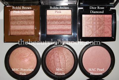 Le Metier de Beaute has a beautiful shimmer powder called Whisper. Chantecaille also had a blush product called Whisper, but it’s now discontinued (the lid is pinkish because I dropped nail polish on it). Both compared to MAC Porcelain Pink.