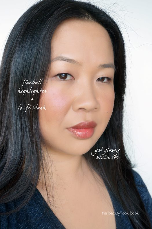 For those who are glow-conscious – I do think these are suitable for those who are ultra conservative in the glow department. Many with oily skin often are wary of anything that glows since oil + shimmer tends to = shiny by afternoon. If you have oily skin the Illuminator is the most natural of the face items. The Multiple Stick has a nice semi-matte finish compared to other multiples and I found it stayed put. The most glowy of the face items is the Powder Blush which I really like – it’s not too shimmery but shimmery enough that you can see it.