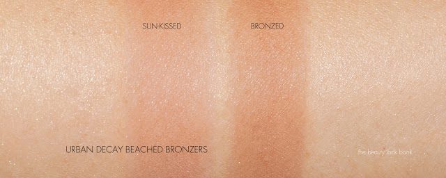 Last up are the two Beached Bronzers. These are matte bronzers that come in round mirrored compacts. I love the packaging – the palm trees add a fun twist with the summer theme. Sun-Kissed is the lighter and warmer option of the two, it has a pinkish undertone which makes it more wearable and natural on my skin. Bronzed is the deeper option and gives my skin a more bronzed brown look. For my medium skin I prefer Sun-Kissed right now – it just looks more natural while Bronzed borderline makes my skin look a bit weathered as it’s more brownish and deep. I love a good bronze but these days try to go a bit easy on it since I’m not as tan as I am in the summer time. They are different enough to justify owning both – I think fairer skins will prefer Sun-Kissed. Deeper skins will probably find Bronzed better for their skin tones. Neither turns orangey and I was relieved to find they did not darken on the skin. The texture is very smooth and the blend nicely on the skin without any streaks. If you’re super fair I’d recommend you opt for either Gold Dust or Terra from Tom Ford instead as those will look more natural on the skin.