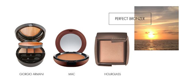 Finding the right bronzer or illuminator to achieve the perfect well-balanced summer glow can be a challenge sometimes. There are slight differences in the undertones, shimmer factor and pigment that can make some products make the skin look muddy, too shimmery or too dark. I’ve always been one to favor stronger contrasted bronzers but sometimes I want something just a bit more subtle. This season there are a number of new bronzers and illuminators that are well balanced in both color and shimmer. The result is a more naturally flattering summer glow. A few of my new favorites mixed in with some older ones in both powder bronzers and liquid highlighters.