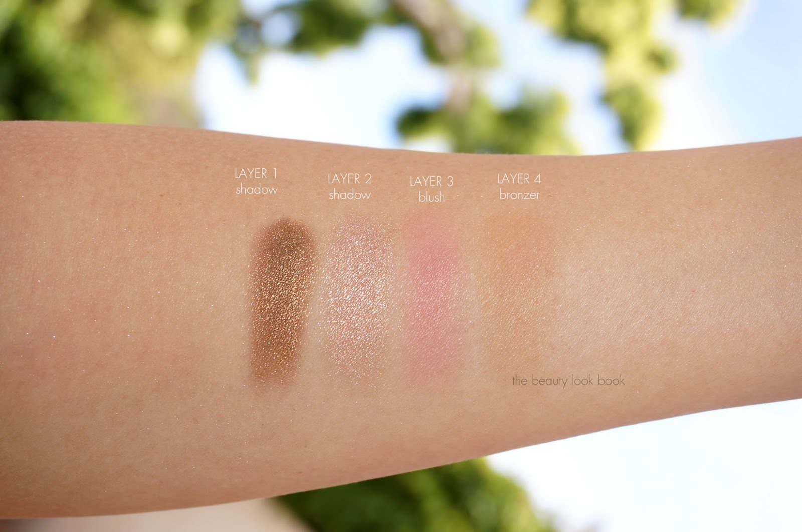 Swatches, note I applied the blush and bronzer with a light hand. The colors are well pigmented once applied on the face but still soft.