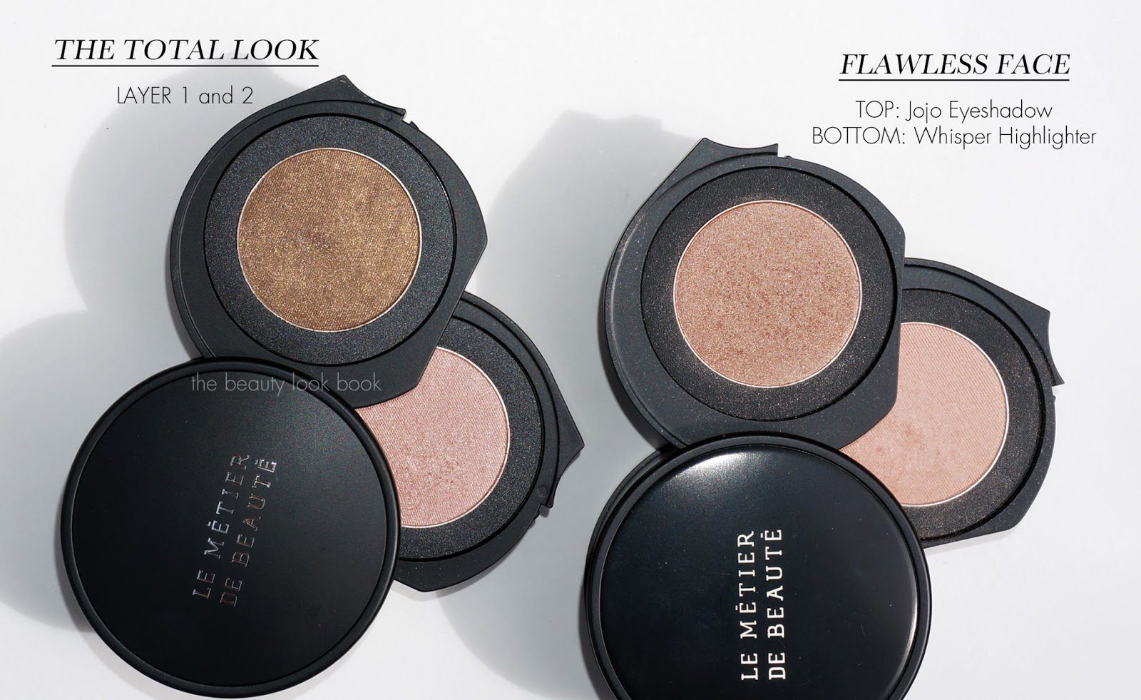 For the top two shades, the pale pink in The Total Look is more shimmery and frosted compare to the Whisper Highlighter: