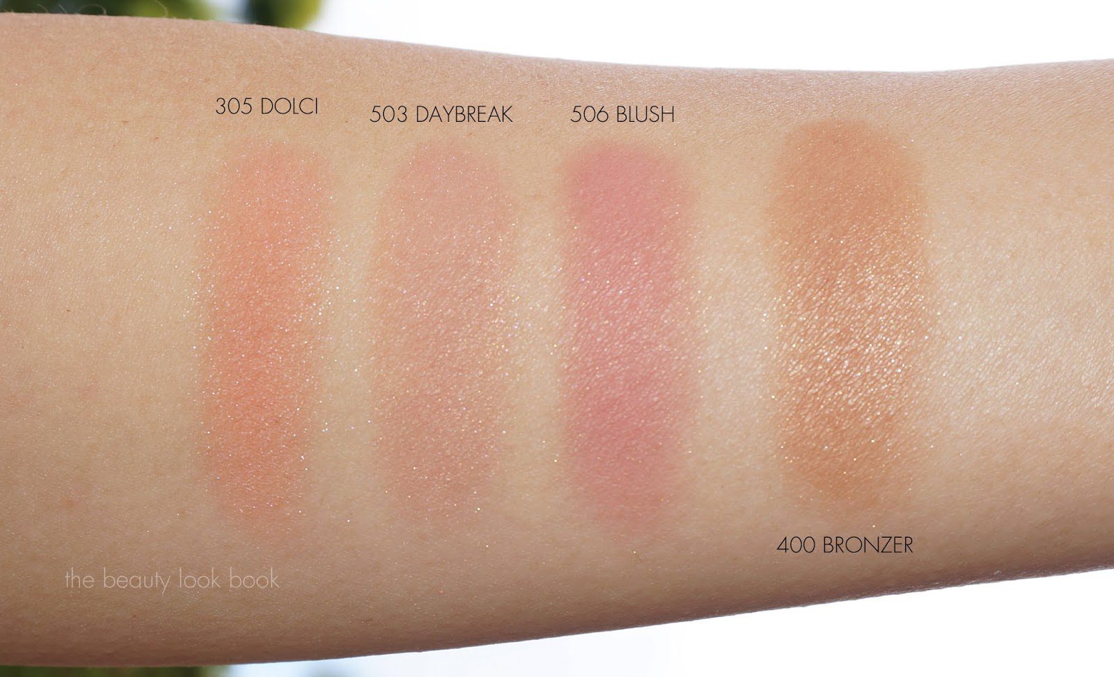 Swatch comparisons in three sets, first peach comparisons, pink comparisons then bronzer comparisons. Below you can see how luminous the Cheek Fabrics are – they are sheer but buildable in color. Those who liked the older blush formula know they have a similar natural look but these have a bit more color which I really like.