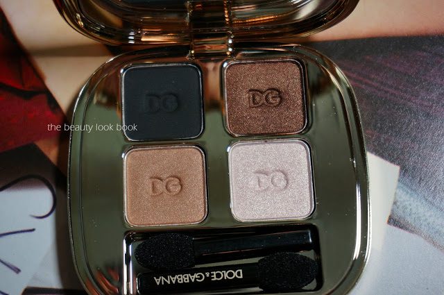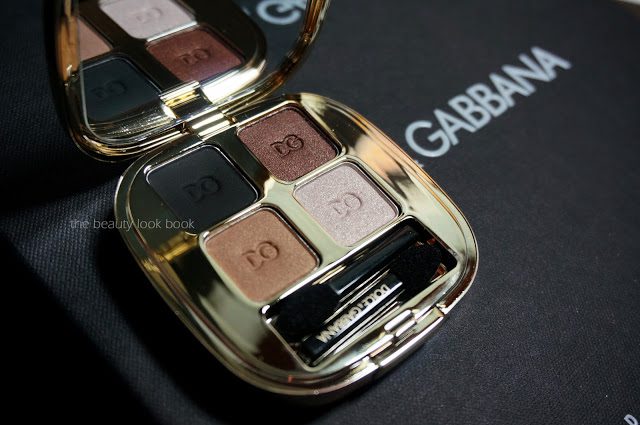 Dolce & Gabbana has released a new eyeshadow quad called Smoky ($59 for .8 g/0.16 oz). It’s part of the new True Monica Collection (more details on Makeup and Beauty Blog, Style Bistro and Refinery29). I ordered mine from Saks Houston sight unseen and was thrilled with this beautiful neutral palette. The colors have enough warmth to create a stunning smokey eye that isn’t too harsh. This palette has a soft matte black, a chocolate brown shimmer infused with gold flecks, a soft sandy beige and a white pink-gold shimmer. Layered from lightest to darkest creates a goof-proof smoky eye. This might just be the best smoky eye palette I’ve tried yet. Each shade has a beautiful blend of different colors and shimmers to create depth.