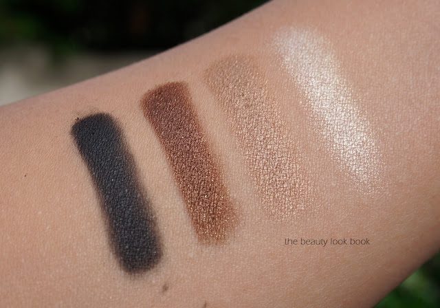 The pigment is rich but natural. Each shade applies very smoothly and are layerable with each other. The pale pink is a white-pink-gold that flashes different shimmers. I couldn’t capture the complexity of the color but it’s stunning on the skin. Some swatches – this may look like a boring palette at first glance, you have to try it to see how pretty it really is on the skin: