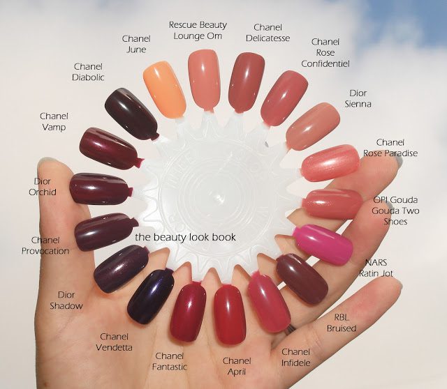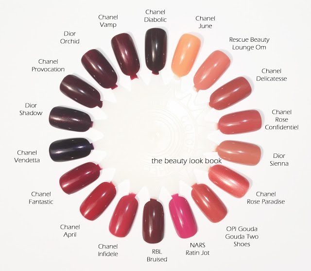Comparisons swatched below (same set, just two different views): Chanel June, Rescue Beauty Lounge Om, Chanel Rose Confidentiel, Dior Sienna, Chanel Rose Paradise, OPI Gouda Gouda Two Shoes, NARS Ratin Jot, Rescue Beauty Lounge Bruised, Chanel April, Chanel Fantastic, Chanel Vendetta, Dior Shadow, Dior Orchid, Chanel Vamp and Chanel Diabolic.