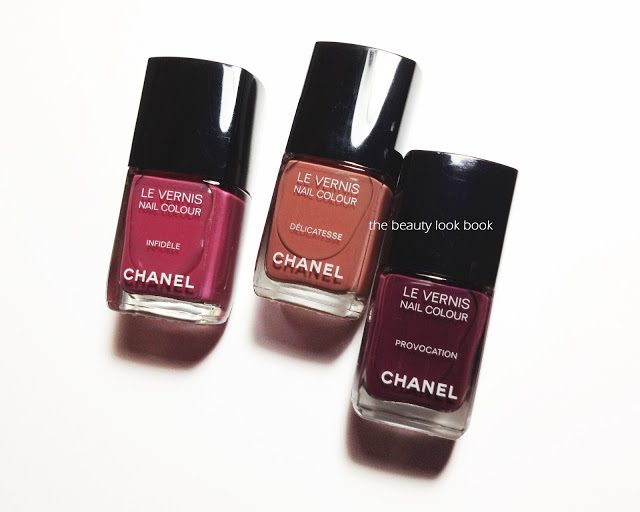 Chanel Délicatesse, Provocation and Infidèle ($26 each, limited-edition for Fashion’s Night Out 2012) just arrived last night from Chanel.com. I’m still playing with each of the shades but so far, I’m extremely impressed. I think each shade is gorgeous and perfect for fall. More swatches to come soon, but for now some comparisons. I thought Khaki Rose might be similar but as you can see above it’s quite different (so it didn’t make the swatch wheel).