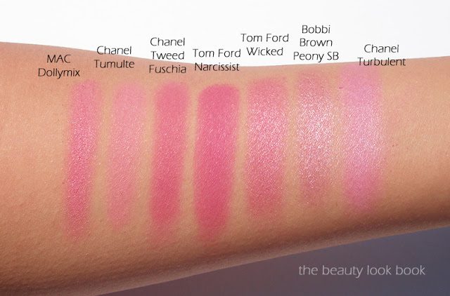 Tom Ford Narcissist is the brightest pink I own. Here are a few others for comparison: