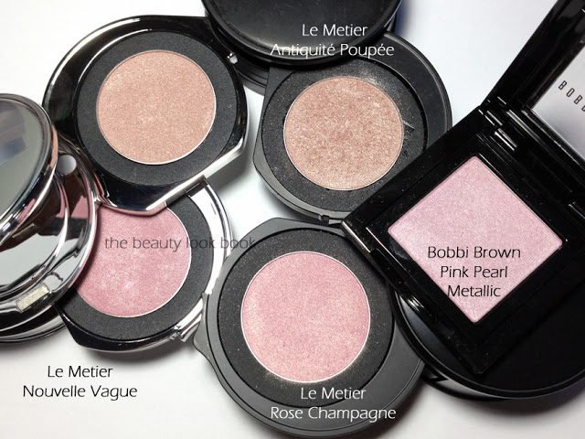 A few sets of comparisons, first up pinks compared to Le Métier de Beauté Antiquité Poupée, Rose Champagne and Bobbi Brown Pink Pearl: