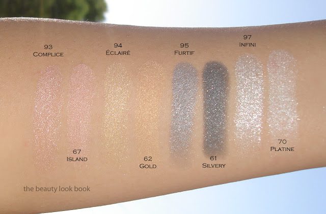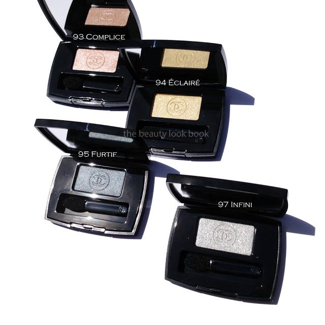 For now, the few comparisons I did have time to pull, you can see that this season’s eyeshadows have a special glimmer: compared to Chanel Island, Gold, Silvery and Platine.