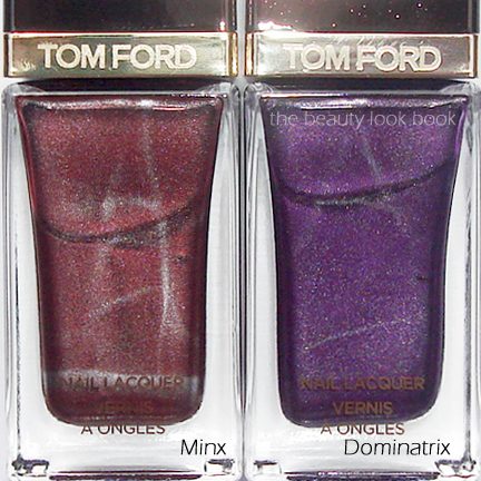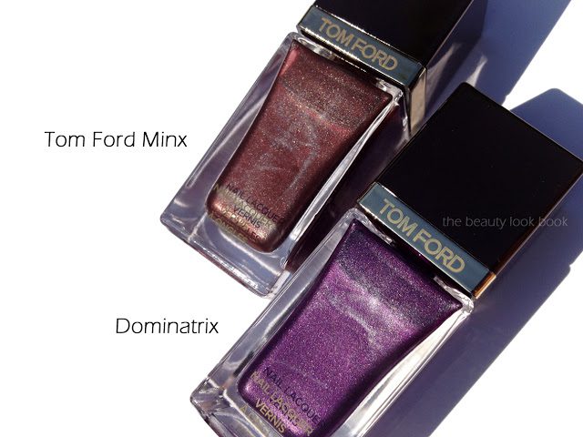 This fall, Tom Ford has released two new shimmery metallic for nails: Minx, a complex metallic warm wine-brown, and Dominatrix, a medium-deep but bright metallic purple ($30 each, both limited-edition). My experiences with Tom Ford’s nail lacquers have been mixed. I have a few of the creams and some of the metallic from last spring (see review/swatches here) and felt the formula was just ok. Still, I decided to give the new shades from fall a try since the promotional photos looked stunning. I’m glad I did. The new polishes for fall are exquisite with excellent smooth coverage. The colors are edgy and dramatic but still wearable for every day. They are perfect for fall and unique compared to other releases we’ve seen this season.