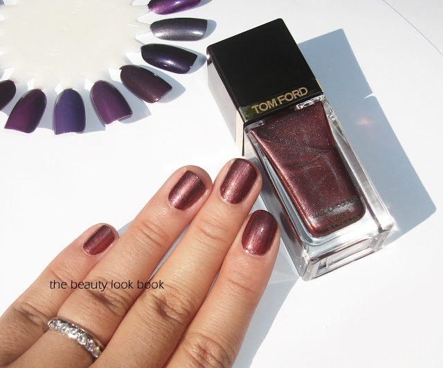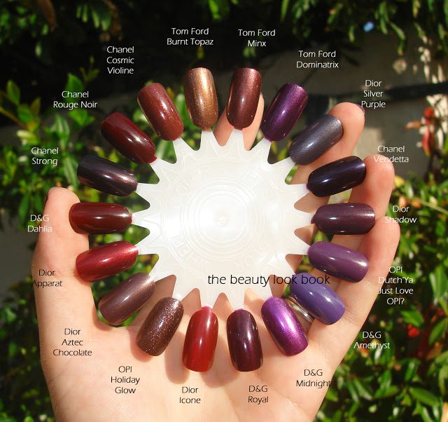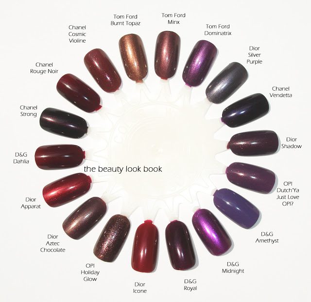 Comparisons swatched below, same set, two views: Tom Ford Minx, Tom Ford Dominatrix, Dior Silver Purple, Chanel Vendetta, Dior Shadow, OPI Dutch’Ya Just Love OPI?, Dolce and Gabbana Amethyst, Dolce and Gabbana Midnight, Dolce and Gabbana Royal, Dior Icone, OPI Holiday Glow, Dior Aztec Chocolate, Dior Apparat, Dolce and Gabbana Dahlia, Chanel Strong, Chanel Rouge Noir, Chanel Cosmic Violine, Tom Ford Burnt Topaz (most of these have been reviewed/swatched in the past, sorry I didn’t have time to link each color, but try the google search function on the sidebar)