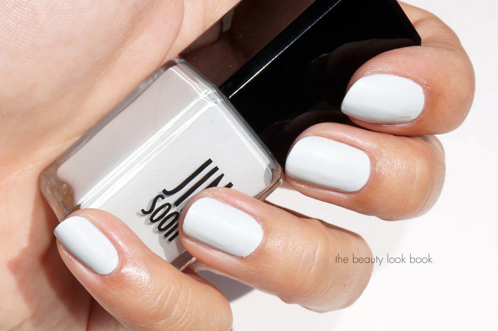 Each color close up and swatched on the nails. JINsoon Kookie White is a super pale white grey with cool tones. It’s almost a pure white but the hint of grey prevents it from looking too harsh. I love the clean contrast it has with the skin. It applies very smoothly with two coats on the nails as long as you have a good base coat underneath. (Roundup of all my nail essentials and favorites here.) It’s fully opaque with two coats, but as with most white colors, you need to take extra care to apply precisely around the edges and near the cuticles.