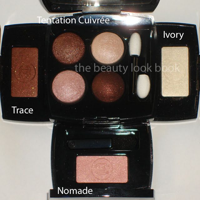 I picked up the two new products released this holiday for Chanel: Tentation Cuivrée Quadra Eyeshadow ($56) & Splash Fluid Iridescent Eyeshadow ($32). In addition to these two, there are a few repromotes such as Cassis Eyeliner (reviewed here), Espresso Eyeliner and Misty-Soft Duo (reviewed here).