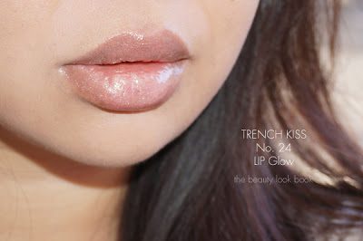 Trench Kiss #24 Lip Glow is a shimmery sheer gold. It looks more golden and sparkly in the tube compared to the Nude Gold #15, but when swatched they look almost identical.