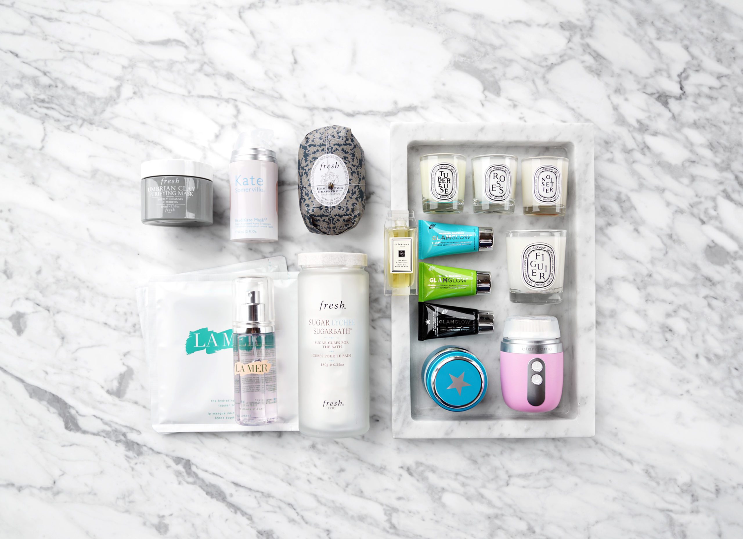 Press samples featured include the Sisley Gentle Face Scrub, Away Mini Suitcase, Molton Brown Russian Leather.