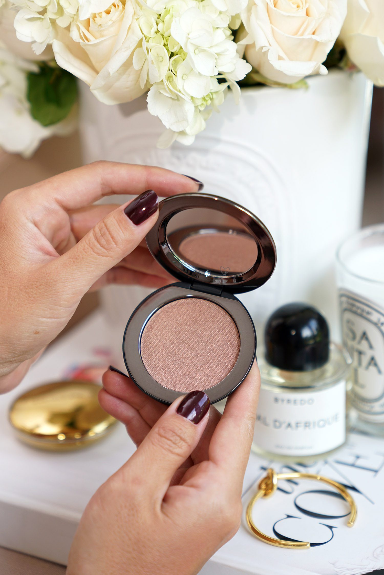 As everyone has mentioned about the line the packaging is exquisite. These come in a hefty mirrored compact that feels luxurious and special when you hold it. The highlighters are a lovely cream to powder finish that have the most lovely shimmer and glow with an easy to blend finish. They are both deeper than traditional champagne colored highlighters which I love. Peau de Peche is a multi-dimensional soft rosy bronze pearl on my skin and if you’re fair it will look more rosy/bronze. I love this on the cheek bones or eyes. It’s absolutely stunning and I cannot rave enough about it.