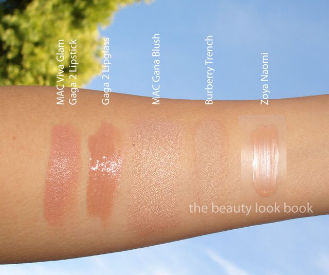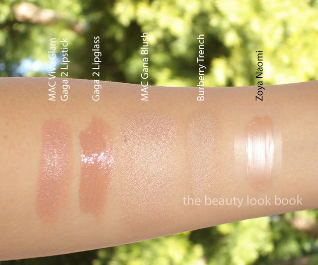 A few new discoveries, thoughts, and swatches: MAC Viva Glam Gaga 2 Lipstick & Lipglass, Zoya Naomi Nail Polish, Burberry Trench Eyeshadow, MAC Gana Blush (from the Mickey Contractor collection).