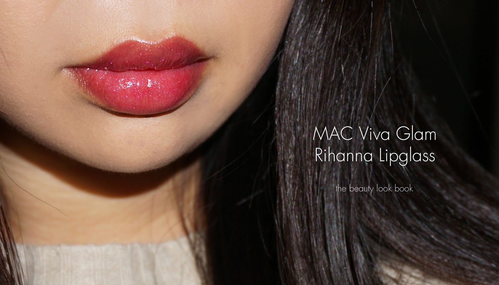 The Viva Glam Rihanna Lipglass is a semi-sheer hot pink red infused with tiny red and fuschia micro sparkles. The base is a bit sheerish but layering with a brush will increase the pigment. When worn alone, it’s a bit transparent so you can see a bit of the lip underneath. When layered over lipsticks it adds sparkle and shine.